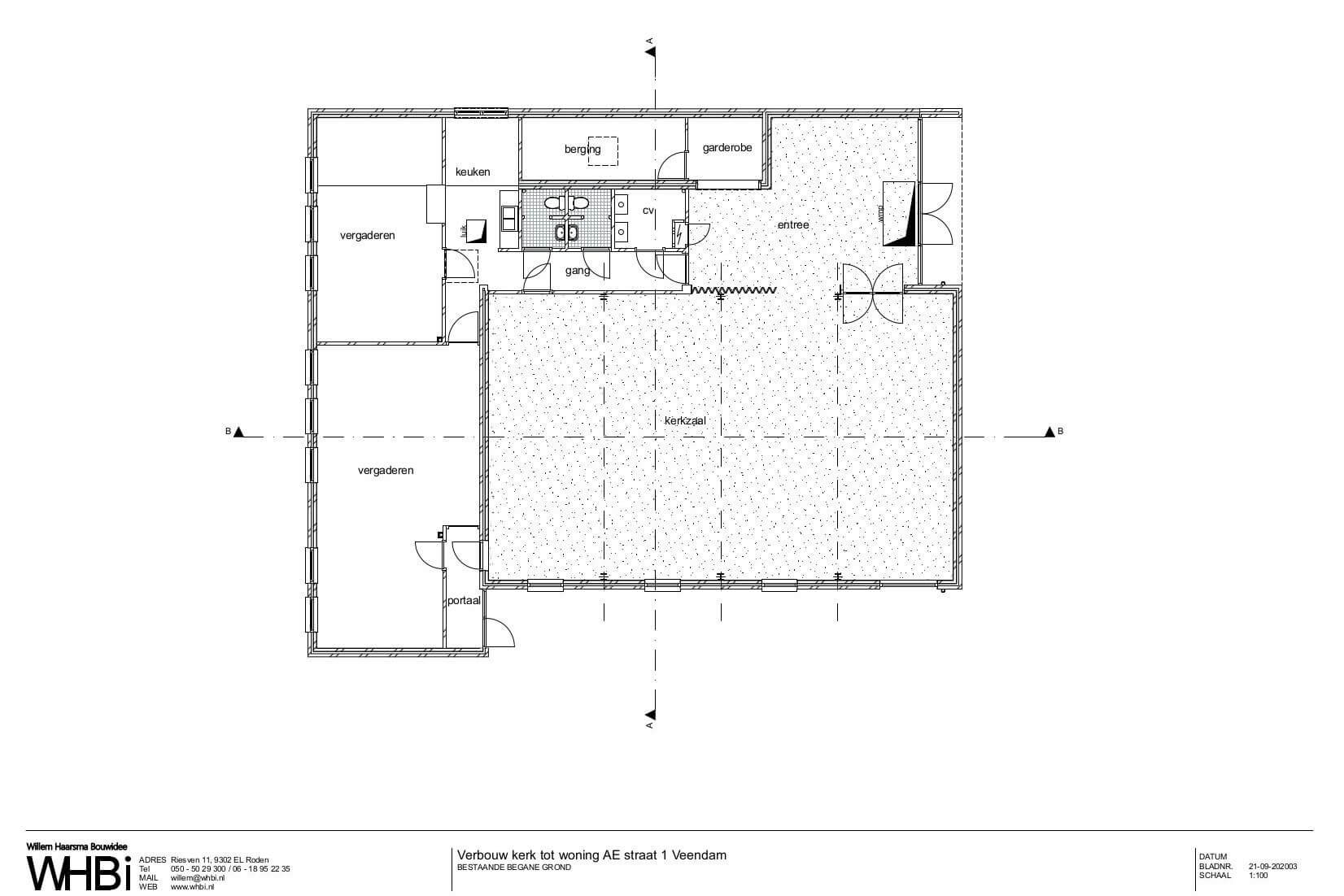 De opdrachtgevers hebben de kerk vlak bij het centrum van Veendam gekocht en willen de kerk tot woning verbouwen. De kerk ligt vlak bij winkels en heeft weinig tuin zodat zij hier nog lang kunnen blijven wonen.